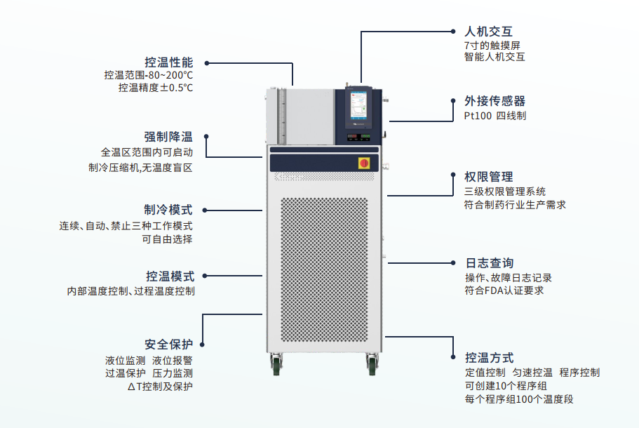 高低溫一體機廣泛應用于各個領域,如實驗室中的樣品處理、物料穩(wěn)定性測試;化工領域中的反應釜、反應器的加熱和冷卻;電子行業(yè)中的元器件測試和老化實驗;生物醫(yī)藥設備的溫度控制等,其靈活性和可靠性使其成為許多行業(yè)中不可或缺的設備。