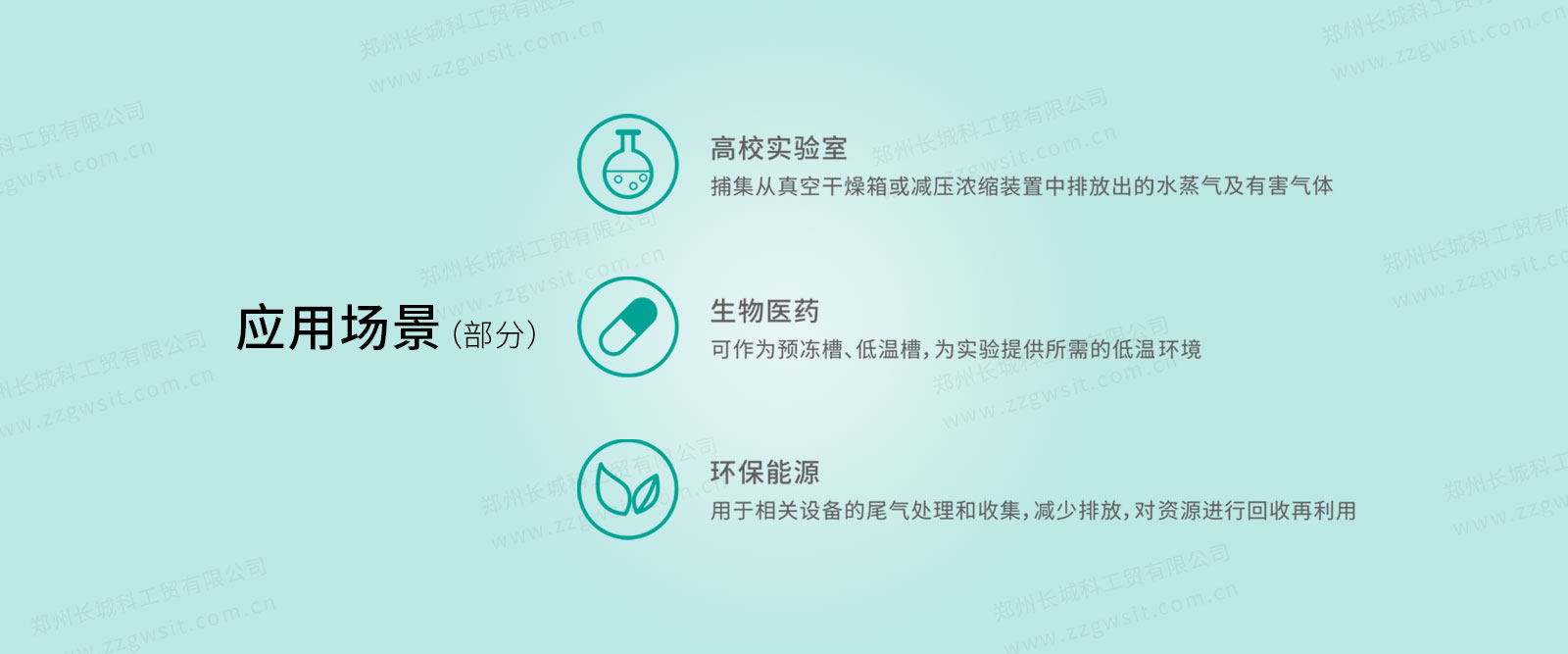 低溫冷阱捕集從真空干燥箱或者減壓濃縮裝置中排放出的水蒸氣及有害氣體,減少真空泵的蒸汽吸入量,延長真空獲取裝置的使用壽命。