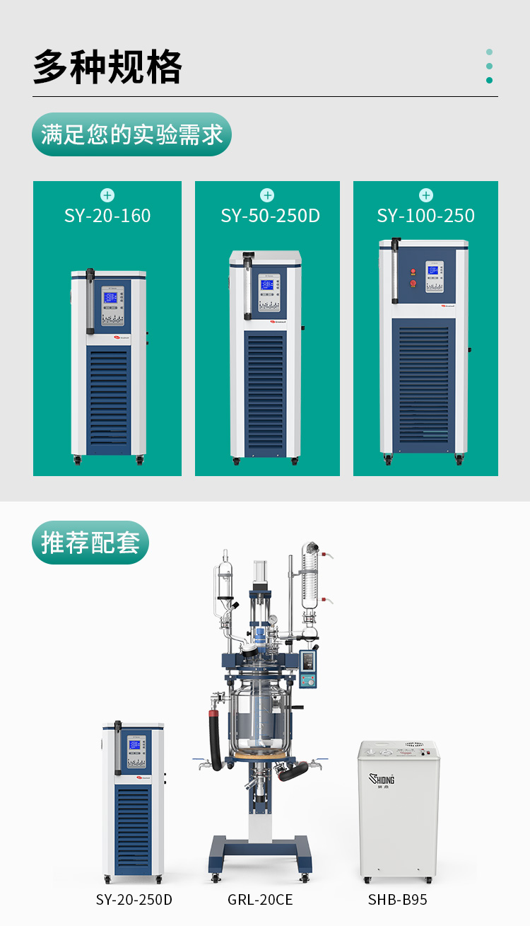 SY-20-250D高溫循環(huán)器通常也叫密閉水冷高溫循環(huán)器,加熱高溫是250℃,使用的溫度控制范圍在室溫5℃~250℃,采用電加熱的方式,通過循環(huán)泵輸出導熱流體加熱配套反應容器中的物料,應用在制藥、化工、石化行業(yè)中需要高溫條件的反應器組合裝置。