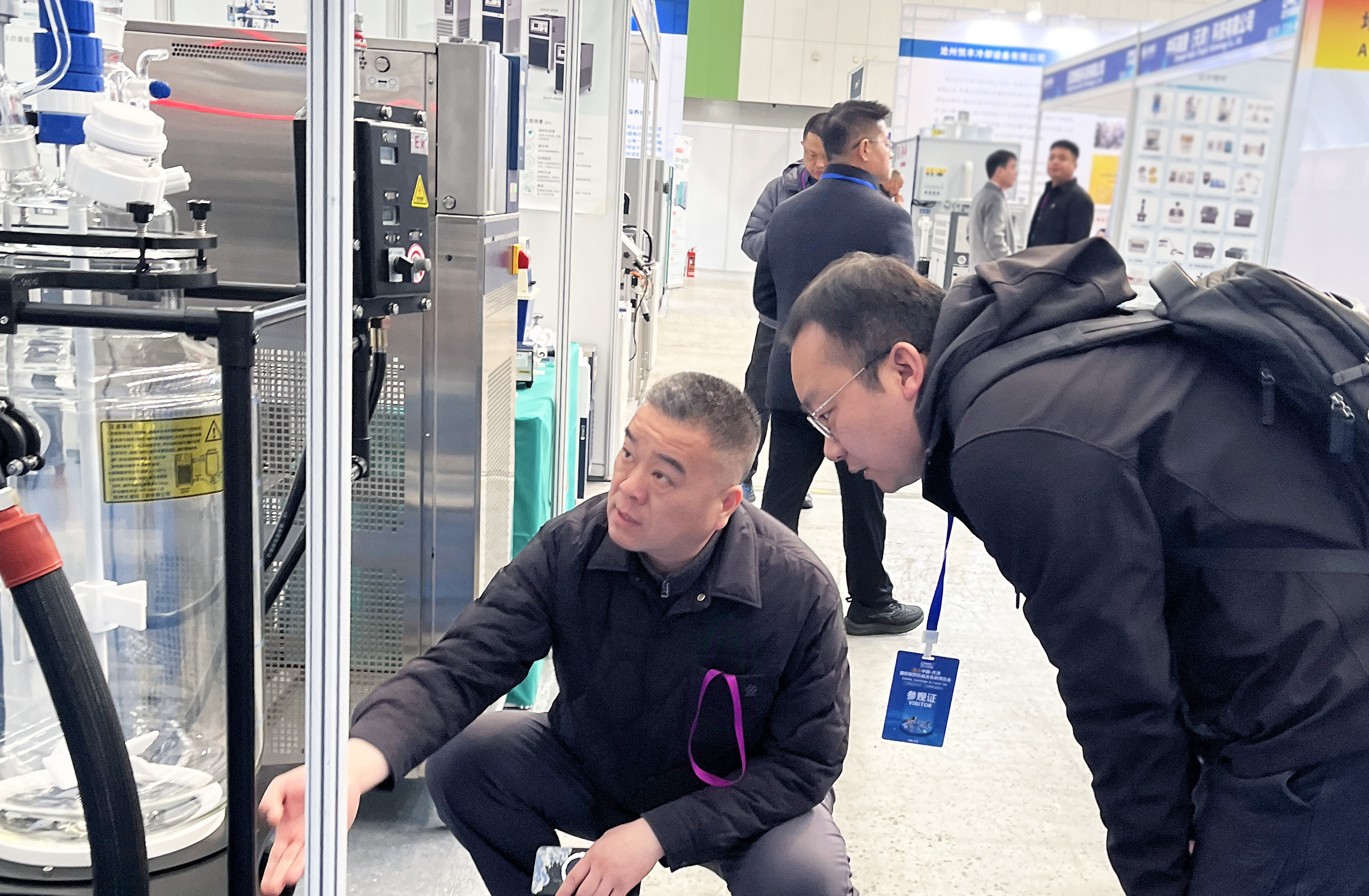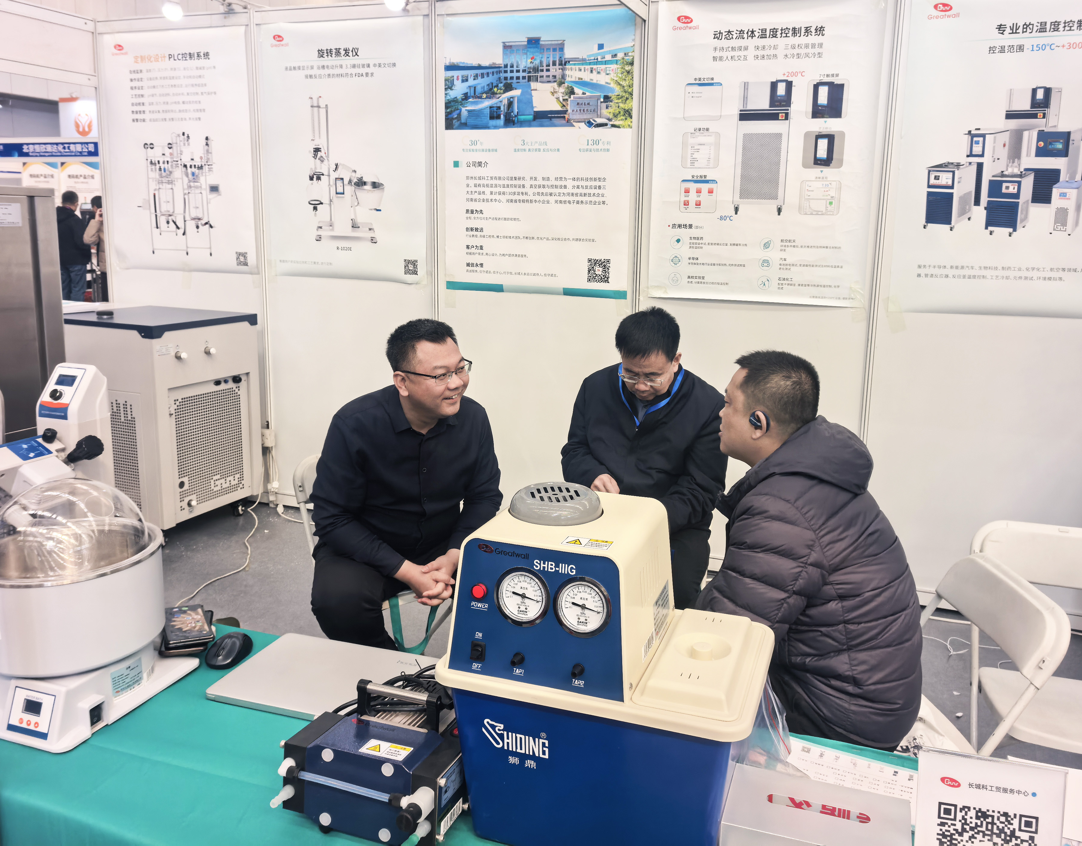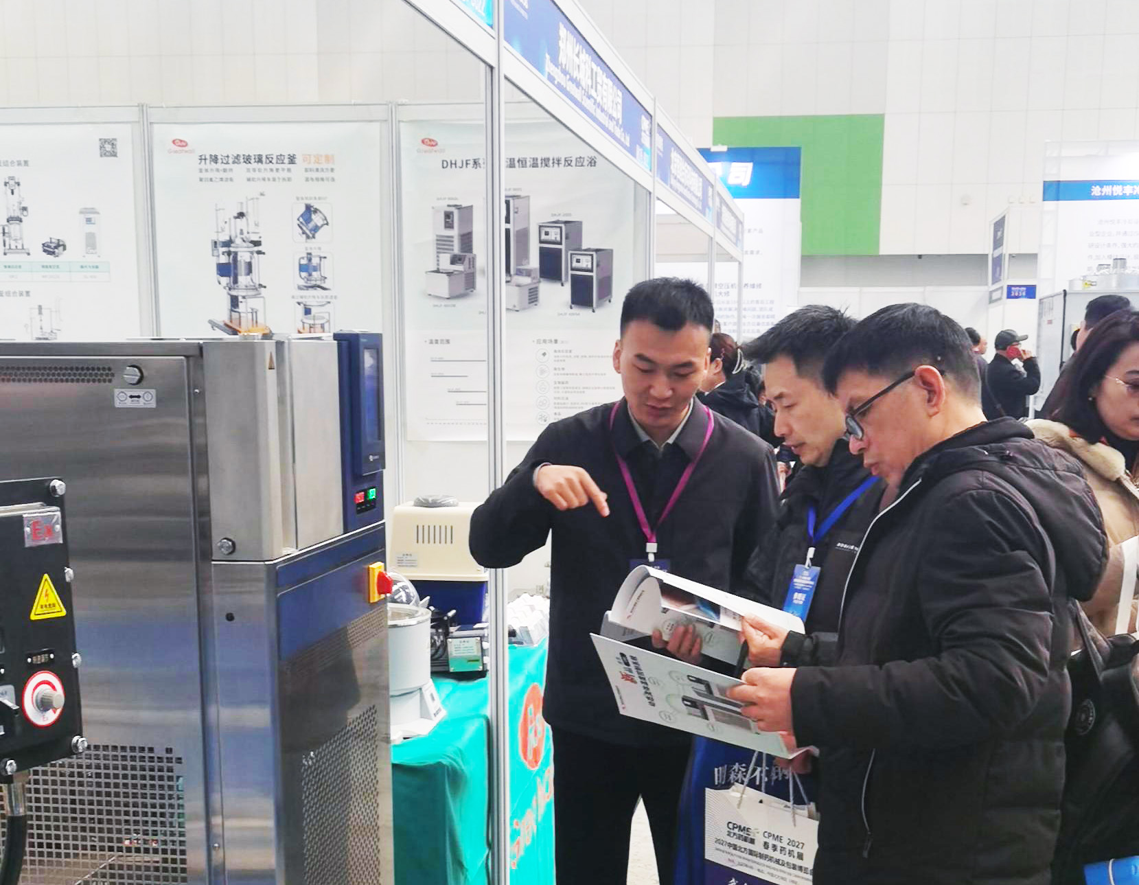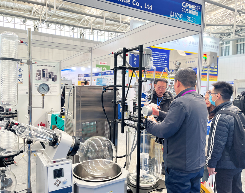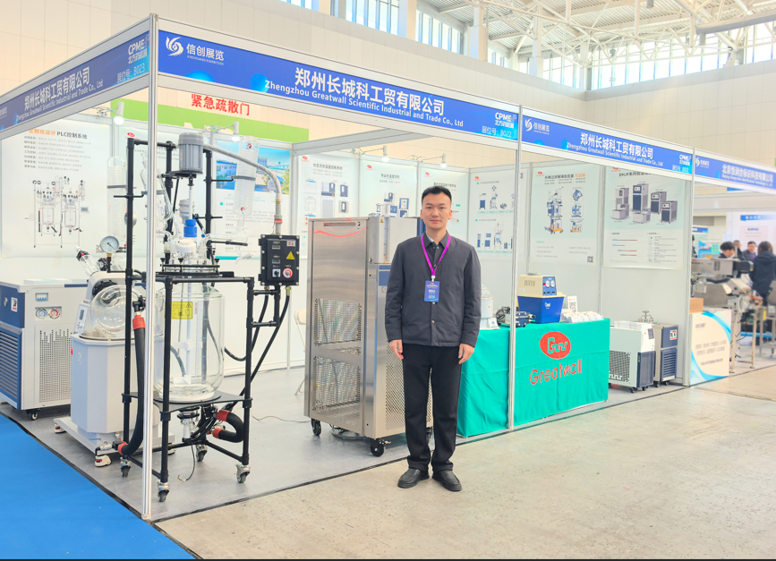 開展首日,長城科工貿(mào)展位便吸引了大量制藥企業(yè)、科研院所及行業(yè)專家駐足交流。從調(diào)速玻璃反應(yīng)釜到旋轉(zhuǎn)蒸發(fā)儀,從防爆密閉制冷加熱循環(huán)裝置到動態(tài)流體溫度控制系統(tǒng),每一款展品前都圍滿了前來咨詢、洽談的專業(yè)觀眾。